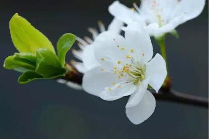 異鄉(xiāng)梨花三兩枝,初綻嫣紅白綠偎。